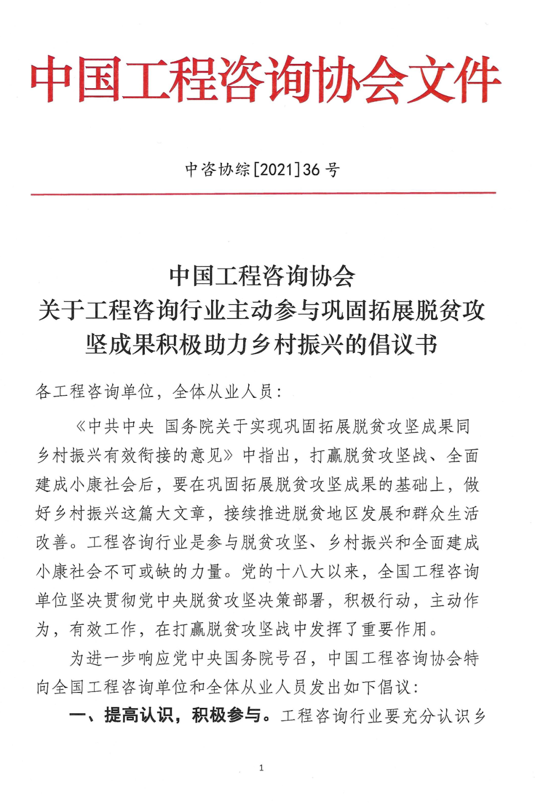 中国工程咨询协会关于工程咨询行业主动参与巩固拓展脱贫攻坚成果积极助力乡村振兴的倡议书